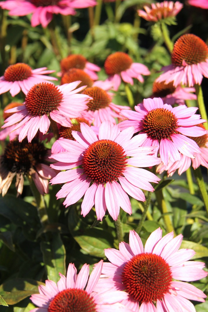 Echinacea ’Sunseekers Pink’ En av flera sorter i serien Sunseekers. ‘Sunseekers Pink’ är välförgrenad och har ett kompakt växtsätt, blir 50 cm. Sorten är blomrik med ljust rosa blommor. Blommorna i serien Sunseekers är färgstarka i säsongen. Fin i rabatter, naturlika prärieplanteringar och till snitt. Blommorna gillas av fjärilar.