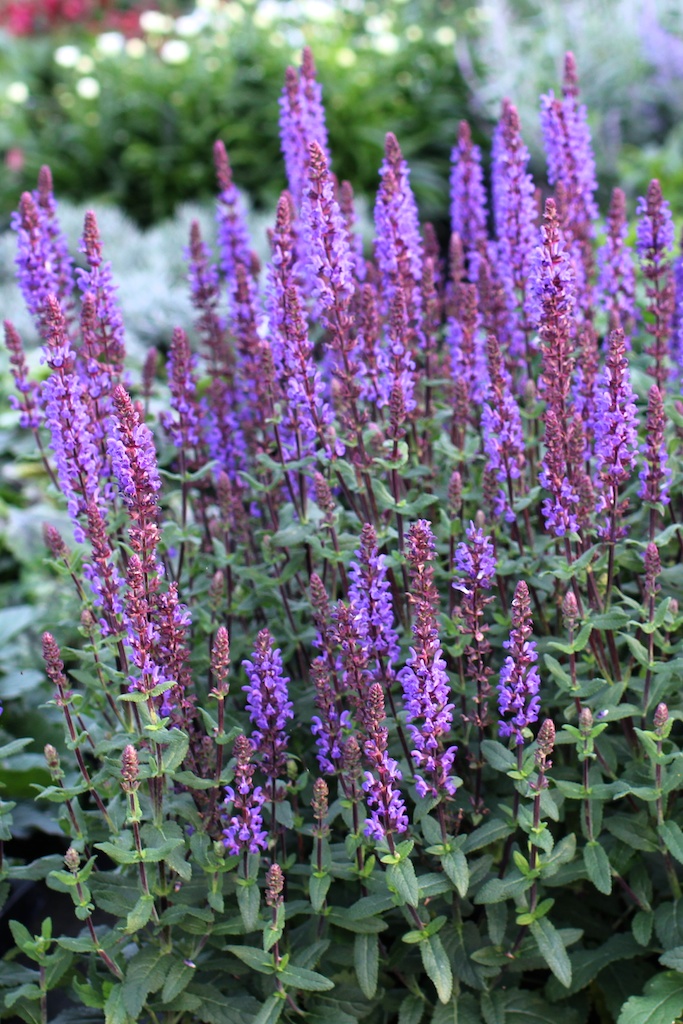 Salvia nemorosa ‘Caramia’ är så mycket som en ny stäppsalvia med mörkvioletta blomstänglar. Den populära sorten ‘Caradonna’ får härmed en utmanare som bryter bättre och är mycket blomvillig. Den är kompakt och blir 40 cm och blommar i juni till september.
